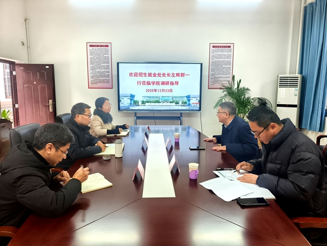 2025年12月23日11:10,学校招生就业处处长左辉群、招生办主任李飞到我院开展招生工作调研,学院党委书记刘庆言、副院长龚霞、学生党总支书记彭玉萌参与调研座谈,座谈会由刘庆言主持。