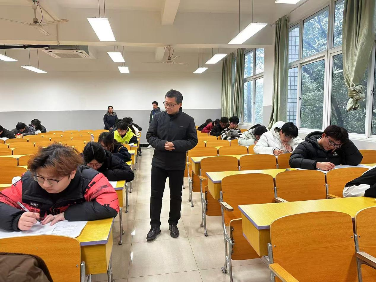 学院领导认真查看了考场环境、座位安排、监考教师履职及学生答题状况,重点关注了考试流程是否规范、考场纪律是否严明、各项保障是否到位。从巡查整体情况来看,本次期末考试组织严密,管理规范;考场布置整洁,氛围严肃;监考教师准时到岗,认真负责;学生自觉遵守考试纪律,专注答题,展现了良好的精神风貌。