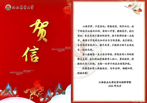 星光不负赶路人,岁月不负有心人;家校同心育桃李,携手共进谱新篇。2026年马年新春将至,为进一步深化家校协同育人机制,凝聚家校社协同育人合力,我院开展“跨越山海,共贺新程”主题活动,为2025年度表现突出的优秀学子家长寄送新春贺信,与家长共同见证孩子的成长荣光,分享学子的奋斗喜悦,激励全体学生在温暖的育人氛围中勇毅前行、逐梦成才。