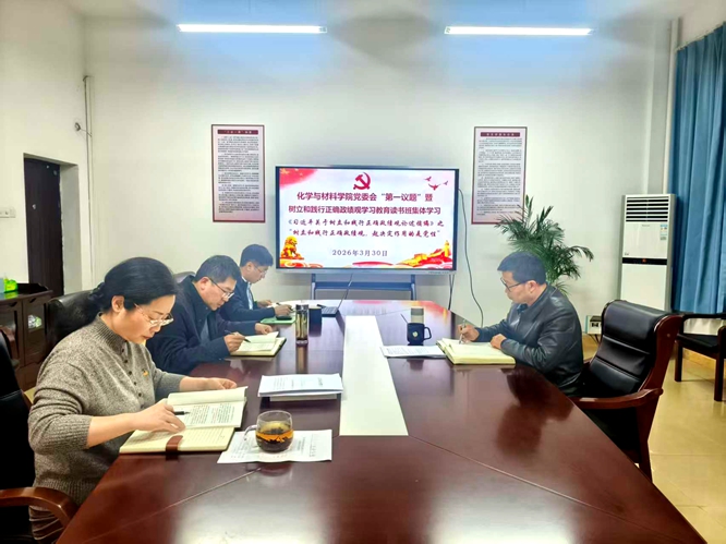 2026年3月30日8:45,学院党委召开会议,开展树立和践行正确政绩观学习教育读书班第二次集体学习。会议由学院党委书记刘庆言主持,副院长、九三学社社员龚霞及学生党总支书记彭玉萌列席会议。