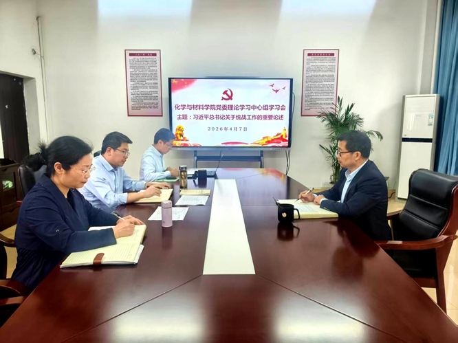 2026年4月7日16:00,学院党委召开理论学习中心组学习会,开展统战工作理论集中学习。会议由学院党委书记刘庆言主持,副院长、九三学社社员龚霞及学生党总支书记彭玉萌列席会议。